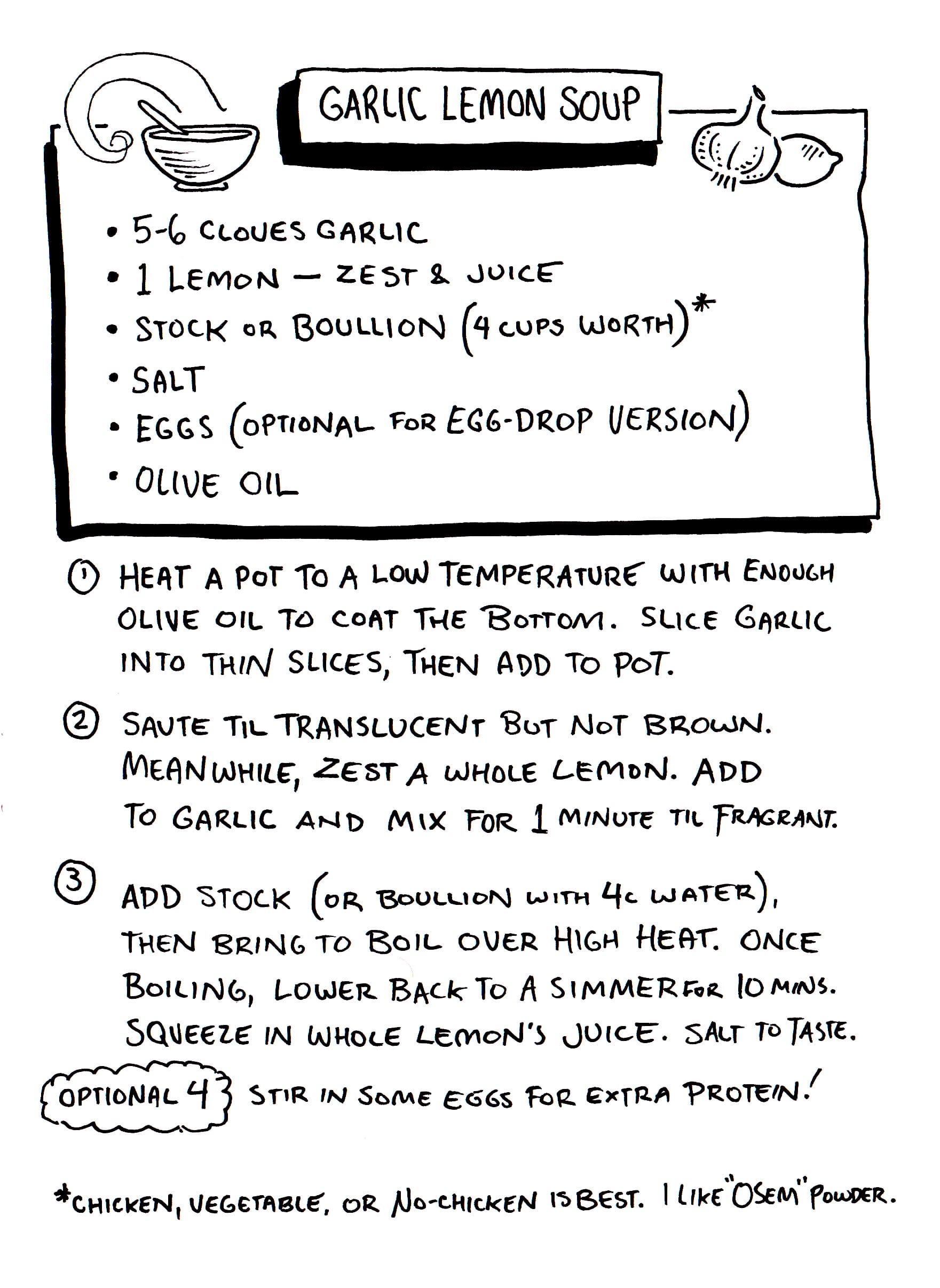 How much more important is it that each of us refines the skills needed to sustainably care for one another! How significant it is to know how to prepare garlic lemon soup!