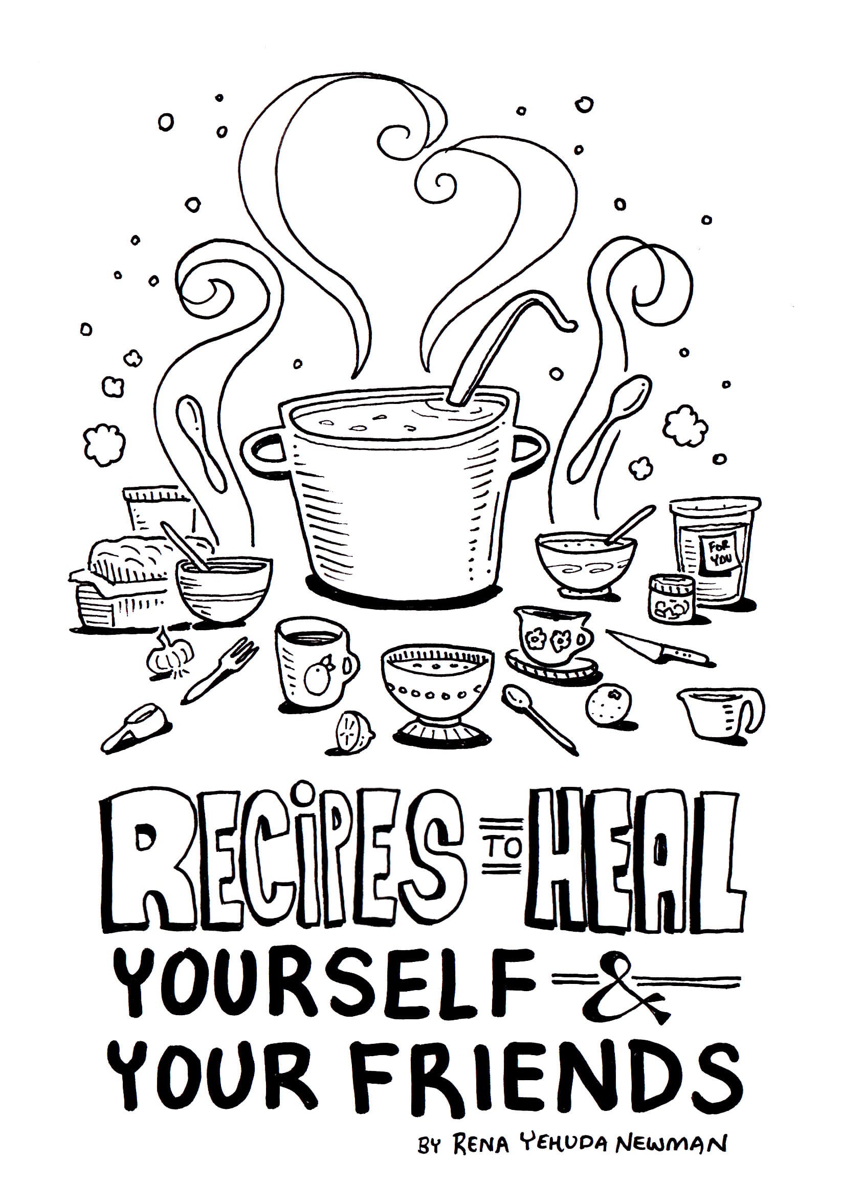 For me, one of the worst parts of feeling sick is not having the energy to cook. Food is medicine, and when I feel crummy, it's extra tragic to not be able to properly feed myself the ways I need to heal. Over the years, I've developed a relationship to a few go-to recipes that are easy enough when I'm exhausted, and almost always make me feel a whole lot better. I put this zine together after a Shabbos dinner where my garlic lemon soup made the guests demand the recipe. I started thinking more seriously about the link between cooking, prayer, and action.