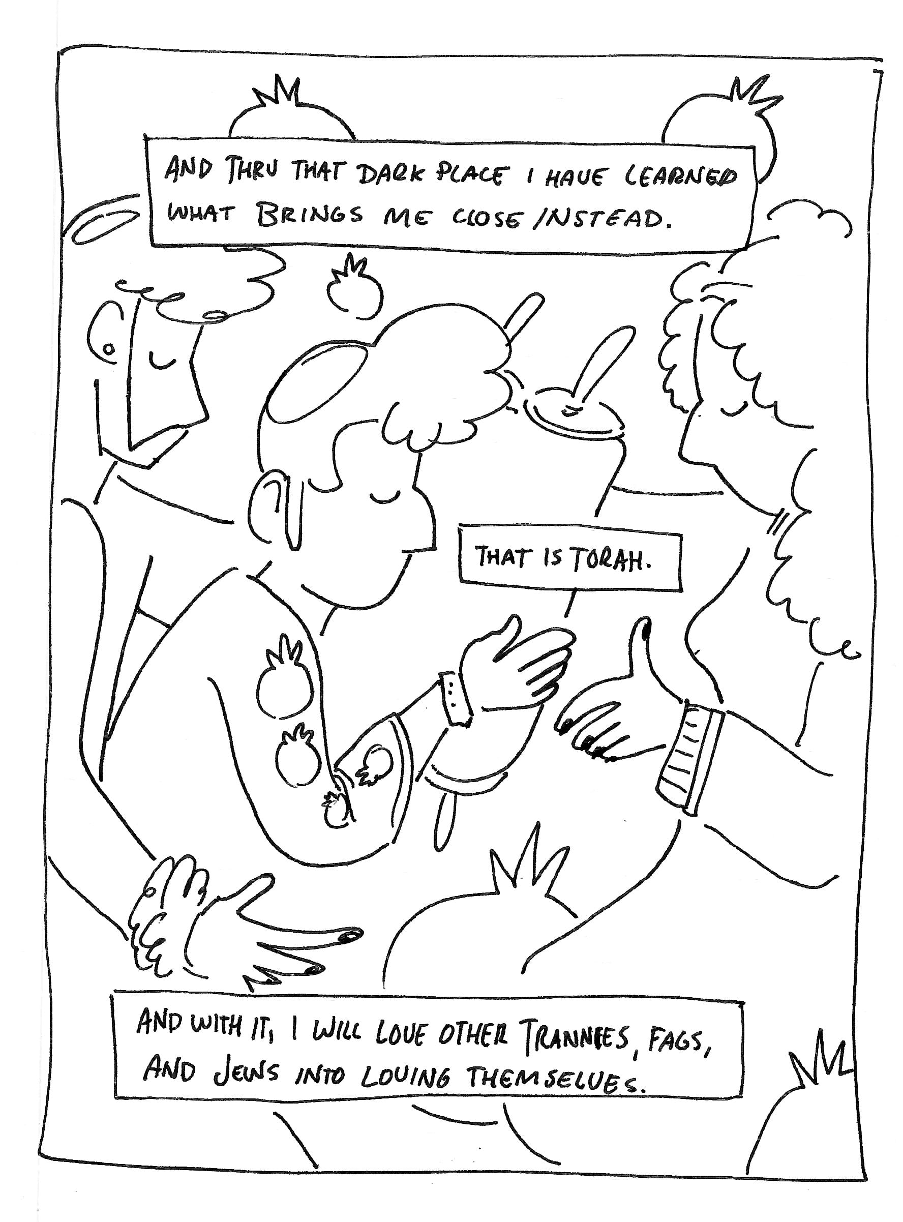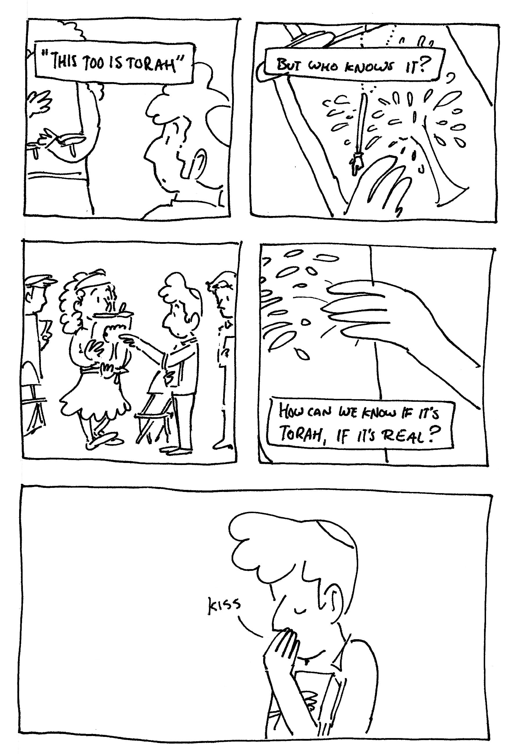In publishing a relatively unedited comic I made without assuming it'd ever be shared with an audience, I hope to model my own spiritual chutzpah, to believe that some of the intimately personal (and even rough, less-perfect) works I've made still contain Torah worth revealing.