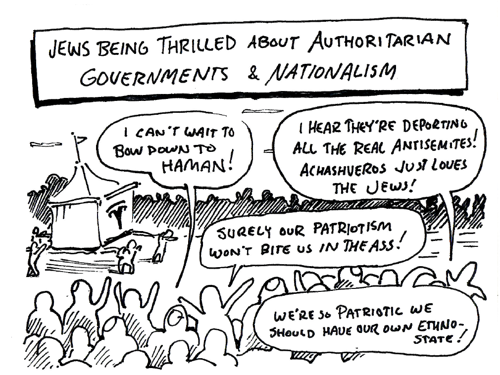 The story of Purim is about capricious state power and the perils of relying upon it for protection. Like every Jewish story, we turn it and turn it and turn it: the narrative can be used for nationalist bloodthirst or as a polemic against empire. This is not my first year reeling from the vast, violent dissonances between interpretations, celebrated by Jews worldwide today. The interpretation of the megillah matters more than the story itself, because without the power of interpretation, one lacks any real ability to understand the story, its meaning or application.
