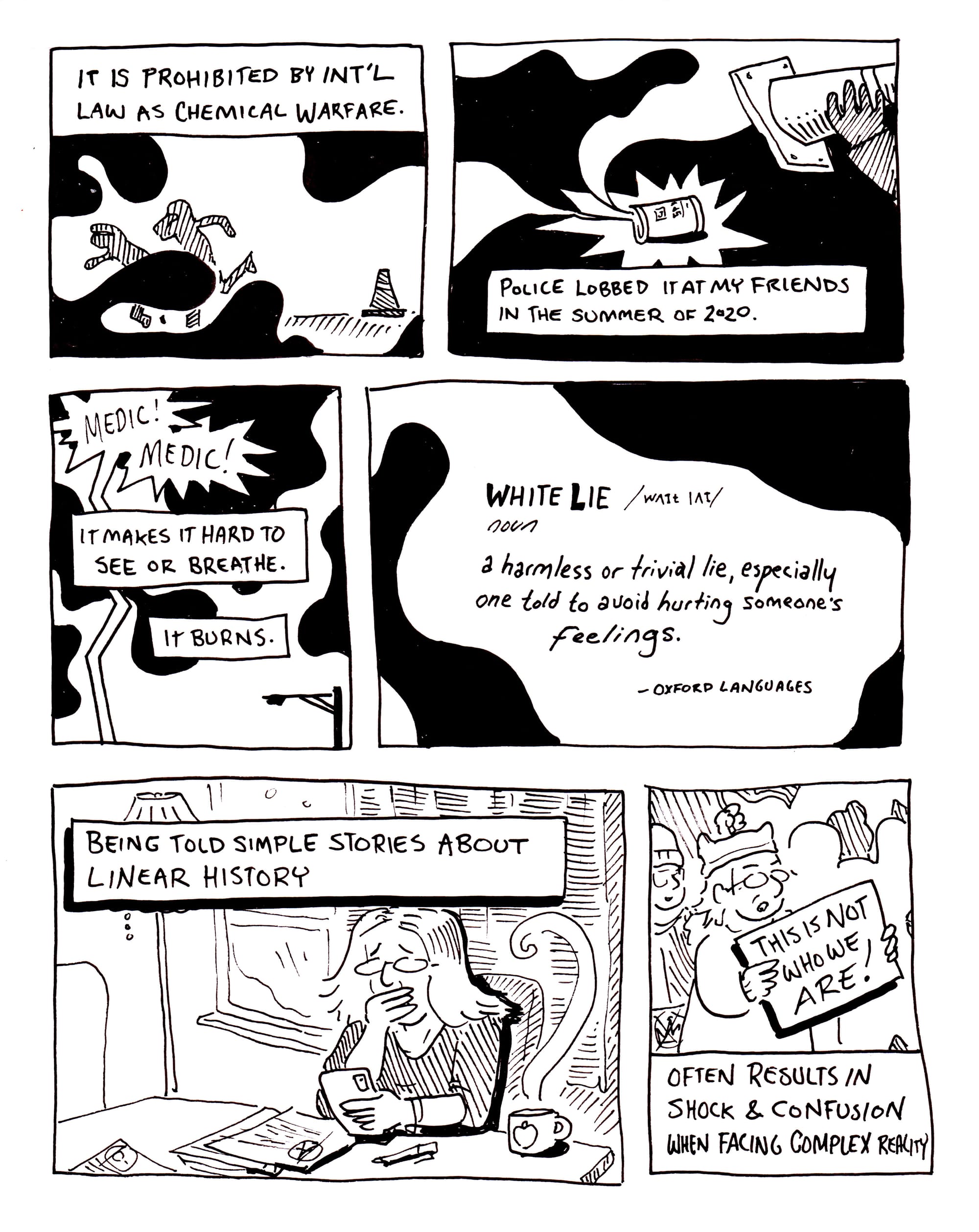 On whiteness, tear gas, and the need for non-linear history.