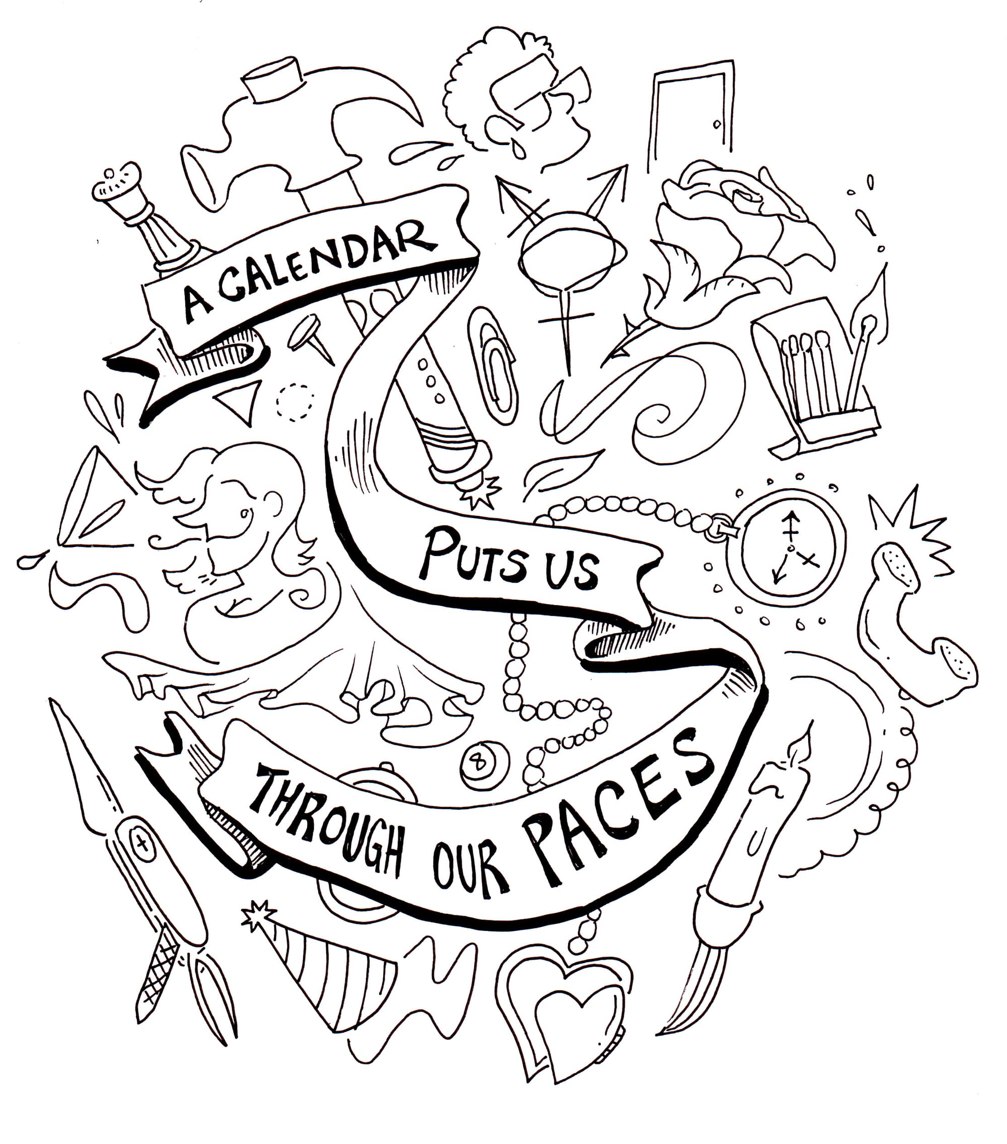 Calendars preside over my experience of time. In following the Jewish calendar, every height of summer I engage in communal mourning on T'sha b'Av. Every end-of-summer in Elul I begin a process of accounting for my own actions, making teshuva, repentance and return, and beginning the journey up to the High Holidays. Every autumn in Sukkot I think about ephemerality and place. Every spring for Pesach, I encounter memory, storytelling, and liberation. Every Shabbat, I rest. When I subscribe to a calendar, I am submitting to the processes embedded inside of it. The calendar puts me through my paces.