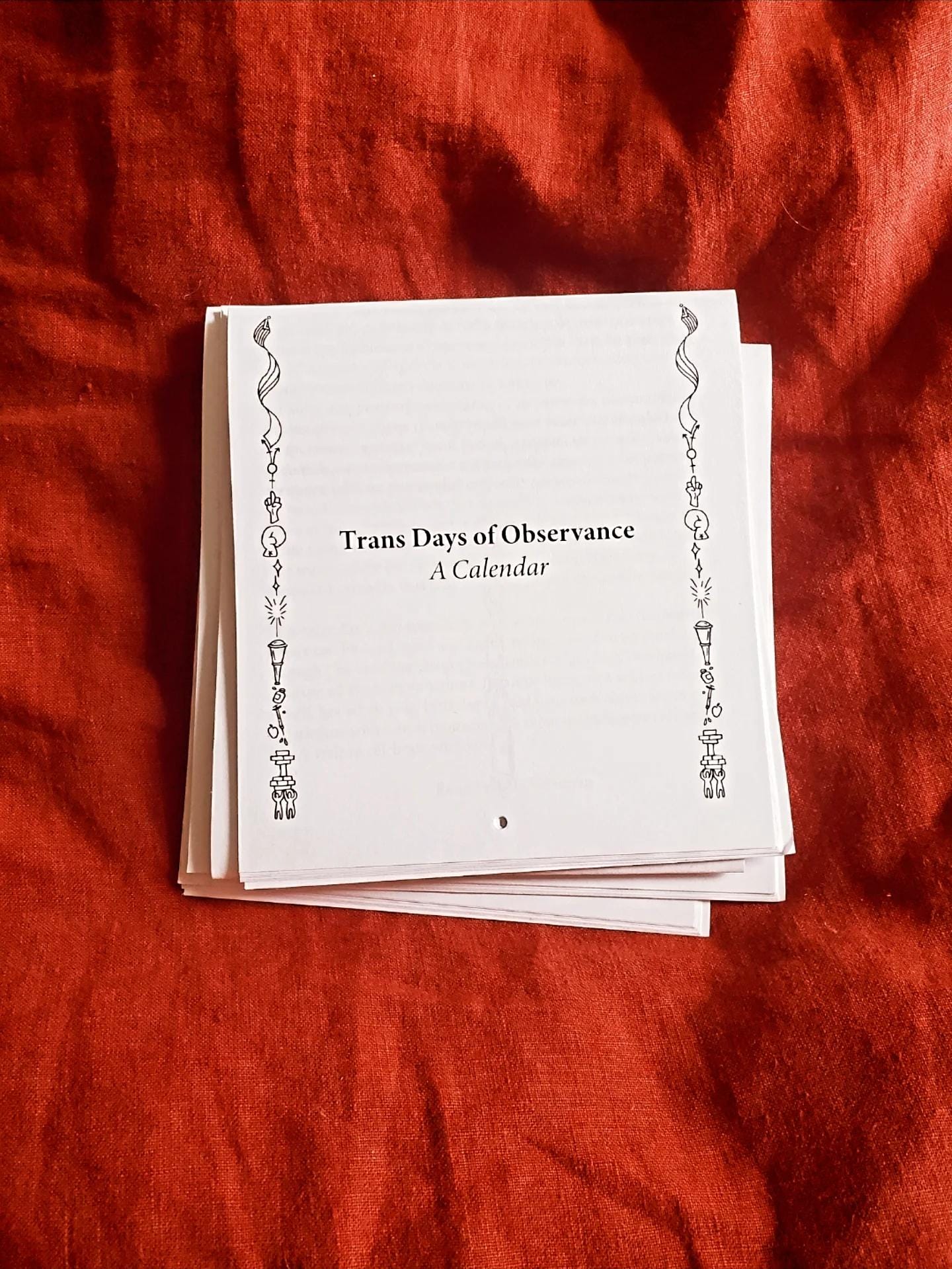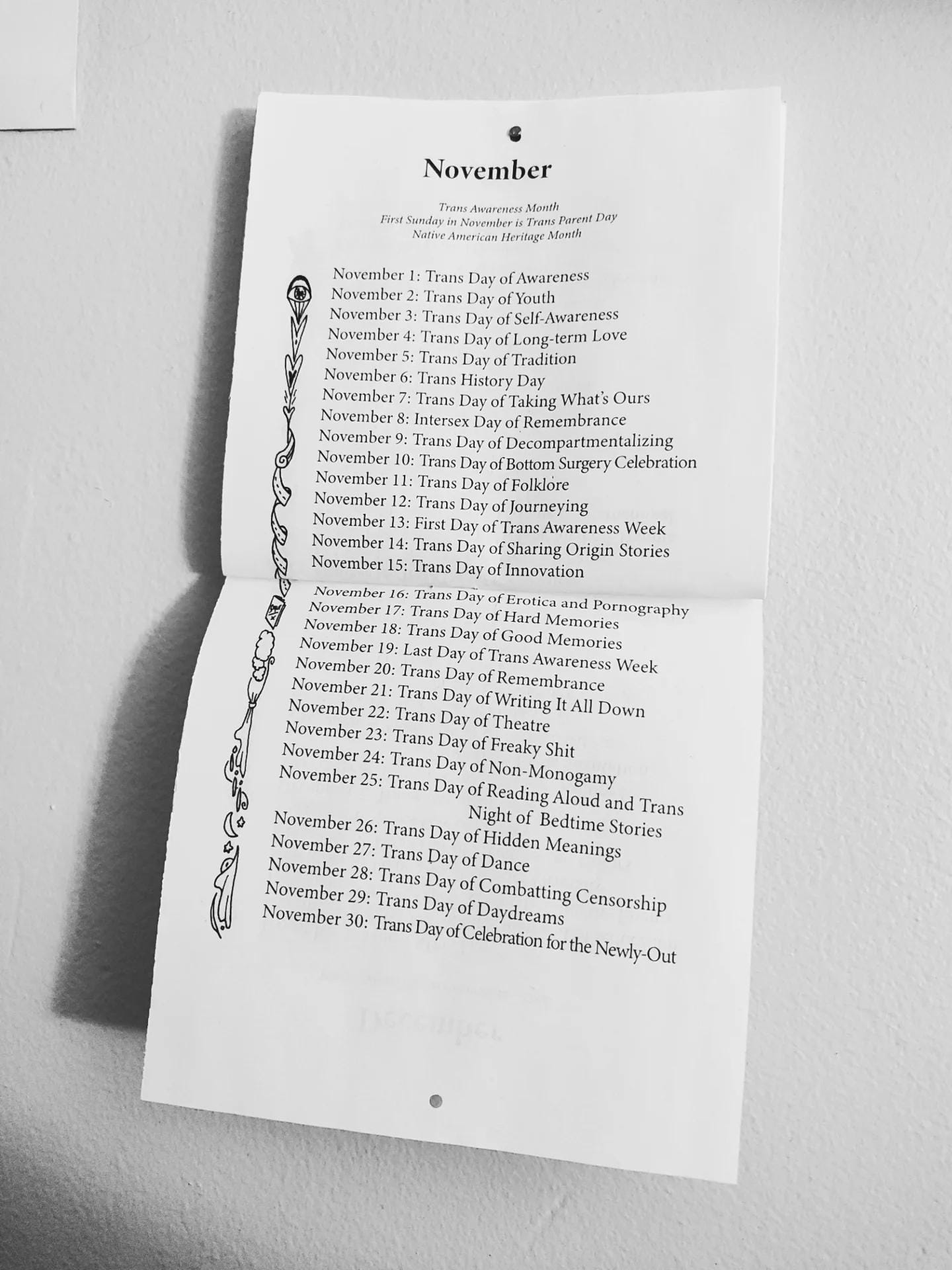 This past year, on Trans Day of Visibility, I released a project called "Trans Days of Observance", more colloquially known as The Trans Calendar. It's easy to print at home and always available for free or what-you-wish.